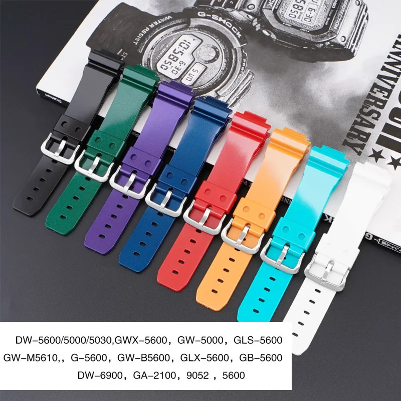 Strap for Casio G-Shock DW-6900 DW-5600 GW-M5610 DW-5600E GA-2100 Colorful Resin Rubber Watch Band Bracelet Accessories 16mm