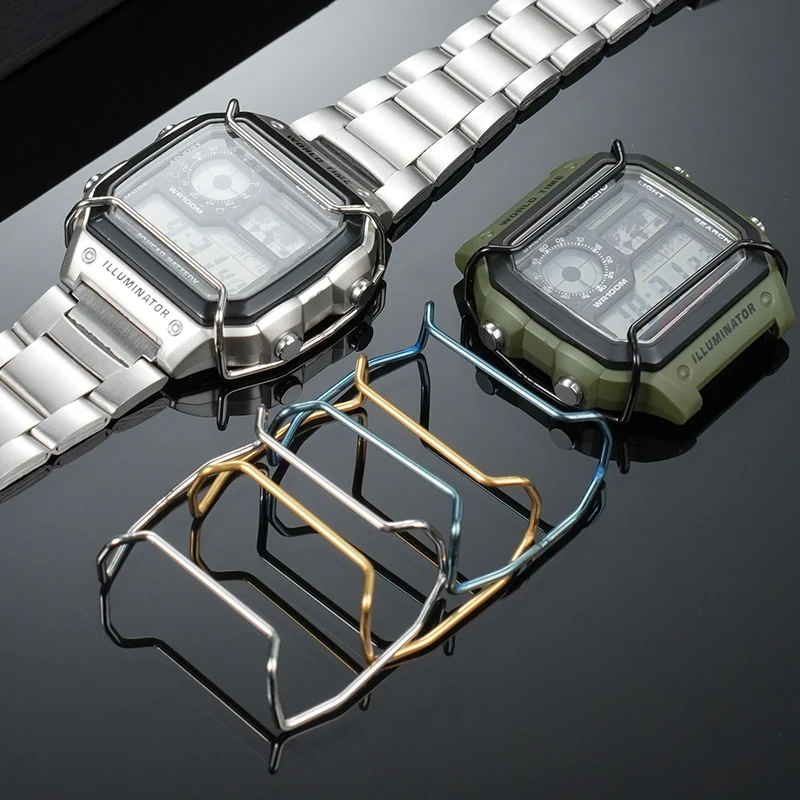 AE-1200 1300 Metal Watch Bumper For Casio 3299 AE1200 AE1300 Stainless Steel case Bumper Crash Strip Anti-Collision Accessories