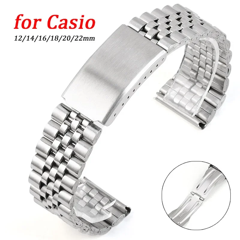 12mm 14mm 16mm 18mm 20mm 22mm Strainless Steel Strap for Seiko for Casio Folding Buckle Metal Watch Band Universal Bracelet