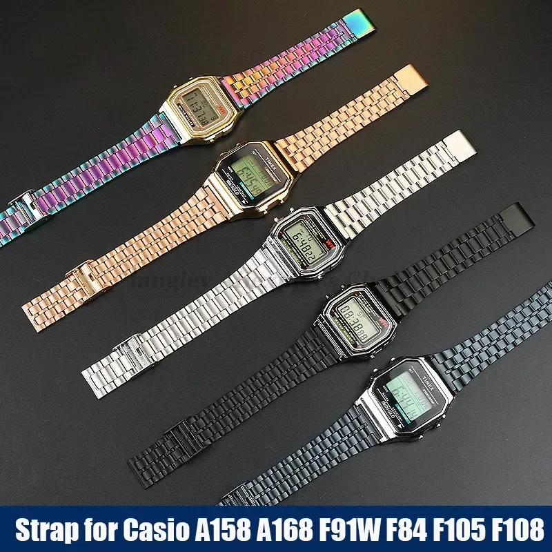 For CASIO Watchband Stainless Steel Strap 18mm for F91W F84 F105 F108 A158 A168 AE1200/1300 B650 AQ230Men Metal Ultra-thin Strap