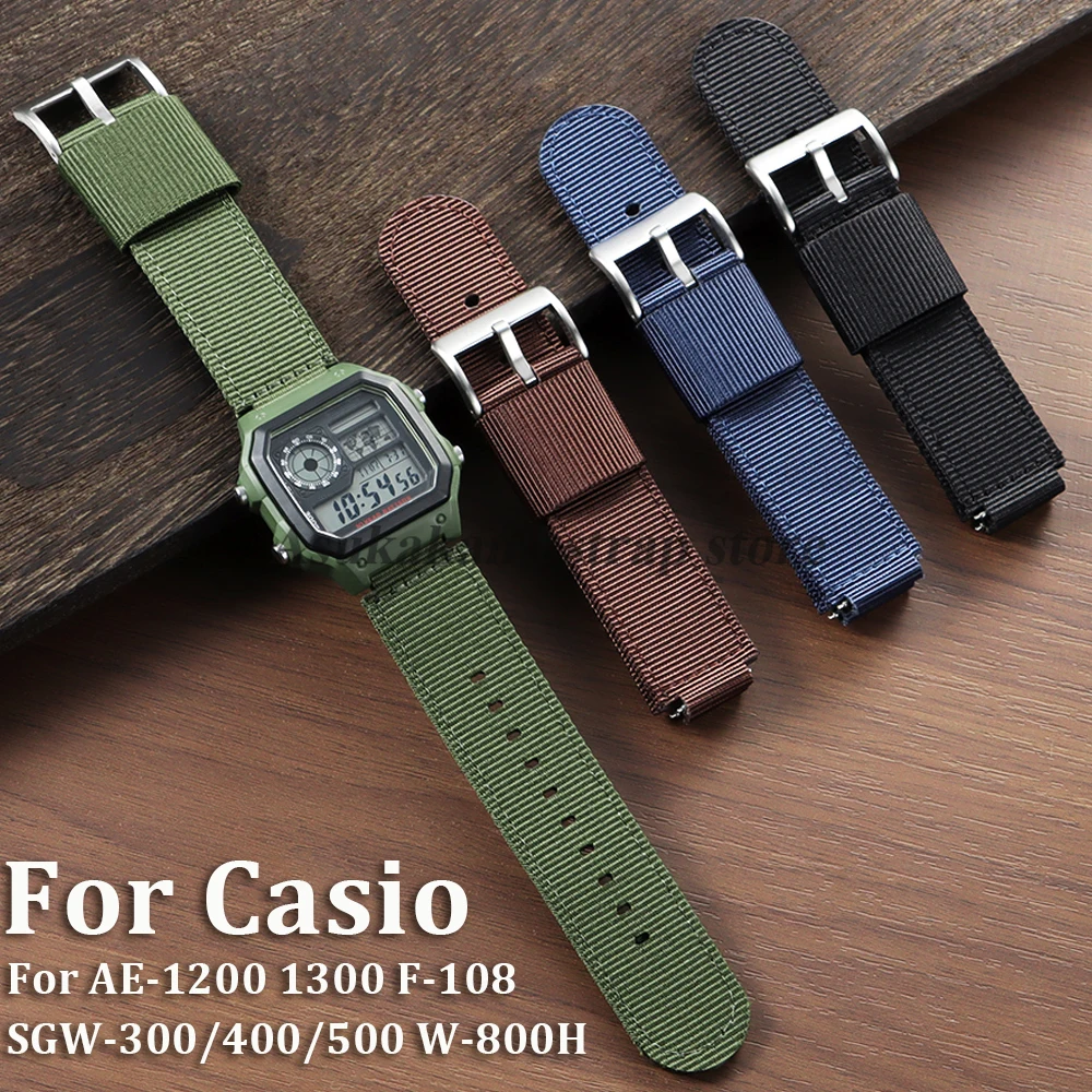 Nylon Strap Quick Release 16mm 18mm for Casio AE-1200 1300 F-108 SGW-300/400/500 W-800H Canvas Watch Band Men's Accessories Belt