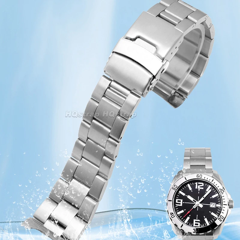 22mm Watch Band Metal for Casio MDV107 MDV106 Silver Stainless Steel Strap for Casio Double Press Folding Buckle Watchband