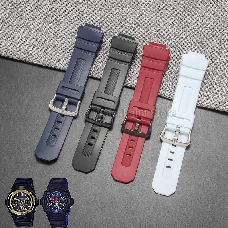 Black Red Blue Resin Watch Strap Flexible Skin-Friendly Stainless Steel Buckle 16mm for Casio AW591/590/5230 AWG-M100/101 Band