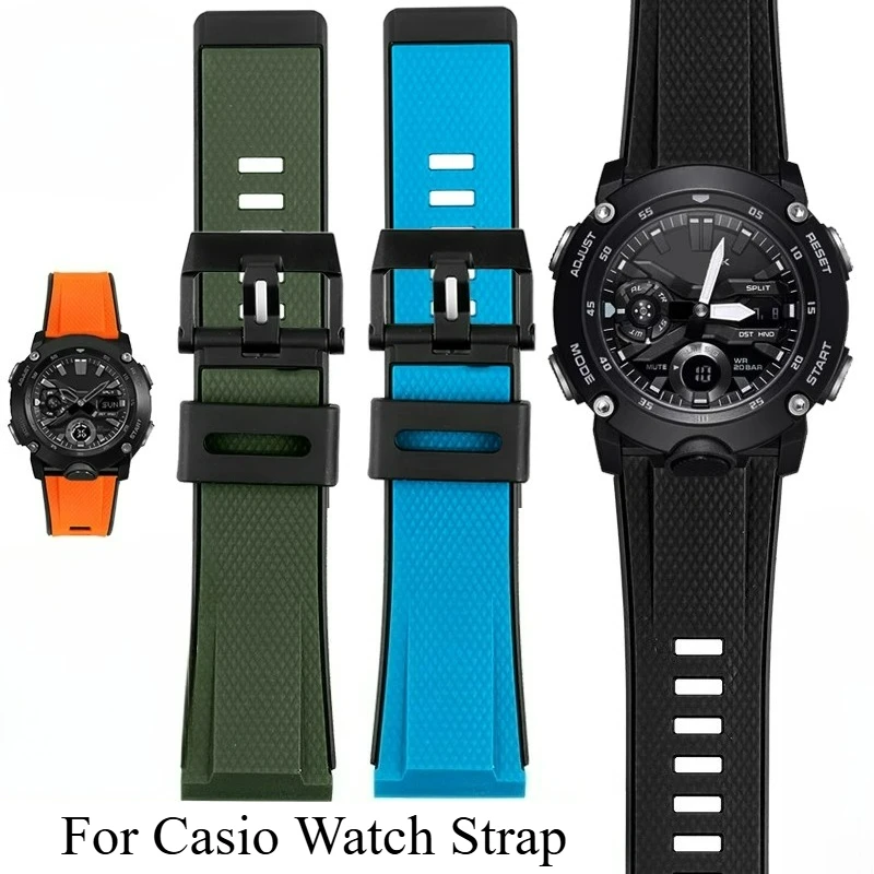 For Casio G-SHOCK Silicone Band GA2200 GA2000 PRG-600 PRW-6600 PRG-650 Resin Watch Strap 24mm Black Yellow Red Army-Green Blue