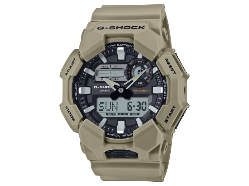 Casio G-Shock GA010 Series Men's Analog-Digital Watch 52mm Case Diameter Bio-based Resin Bezel Tan Bio-based Resin Band GA-010-5ACR. The digital GD010 delivers handy features like world time and stopwatch as well as a high-brightness LED light which...  Read more