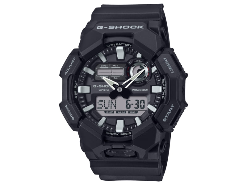 Casio G-Shock GA010 Series Men's Analog-Digital Watch 52mm Case Diameter Bio-based Resin Bezel Black Bio-based Resin Band GA-010-1ACR. The digital GD010 delivers handy features like world time and stopwatch as well as a high-brightness LED light...  Read more