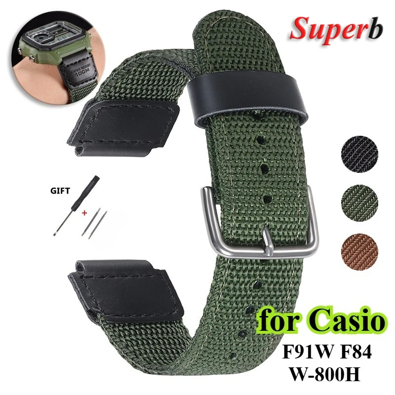 18mm Nylon Watch Strap for Casio AE1200/1300 W800H SGW400 F91W F84 F105/108/A158/168 Canvas Strap Men's Sports Bracelet