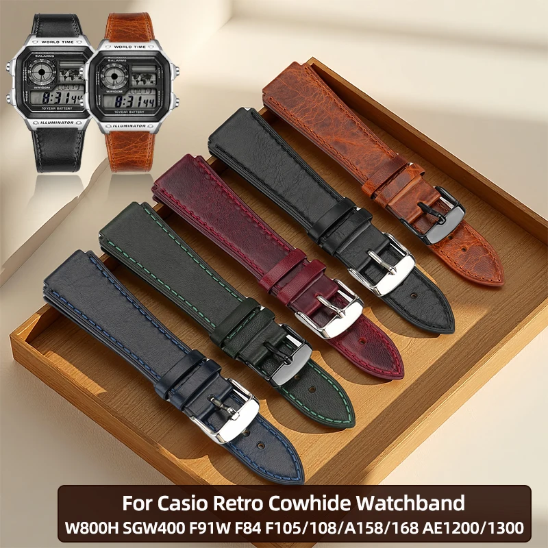 New Retro Cowhide Watchband For Casio W800H SGW400 F91W F84 F105/108/A158/168 AE1200/1300 Vintage Watch Bracelet Calfskin Strap  Read more
