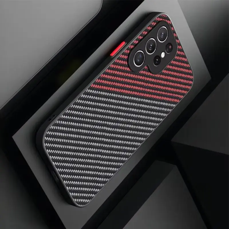 Geometric Carbon Fiber Matte PC Case For Samsung Galaxy S25 S23 S24 Ultra S22 S21 Plus FE A56 A36 A26 A16 A35 A06 A15 A25 A55 5G