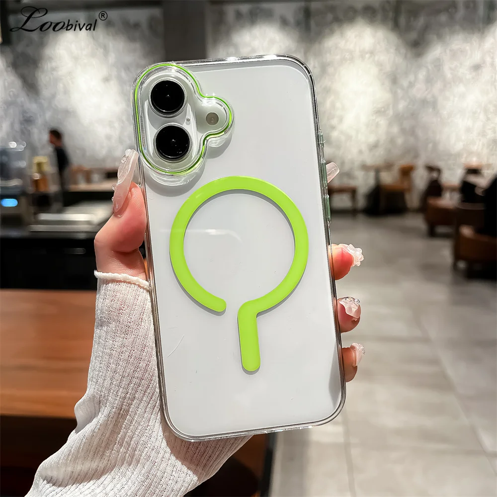for Magsafe Transparent Hard PC Case for iPhone 16 15 14 13 12 17 Pro Max Air Plus Magnetic Wireless Charging Clear Slim Cover