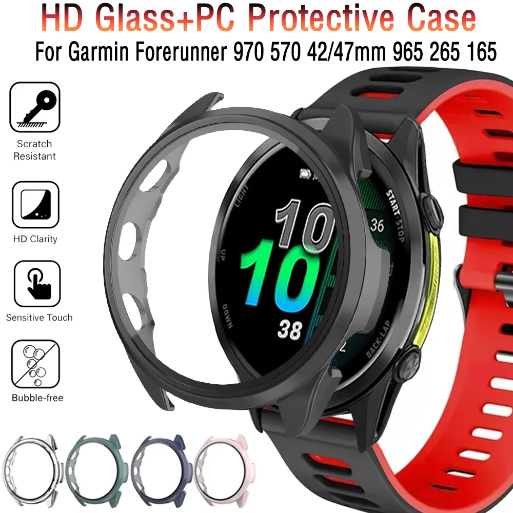 HD Glass+PC Case for Garmin Forerunner 970 570 42/47mm 965 265 165 All-around Screen Protective Shell Venu 3 Vivoactive 5 Cover