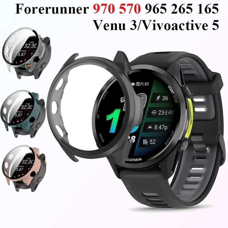 PC Case For Garmin Forerunner 970 570 965 265 165 HD Tempered Glass All-around Screen Protective Shell Venu 3/Vivoactive 5 Cover