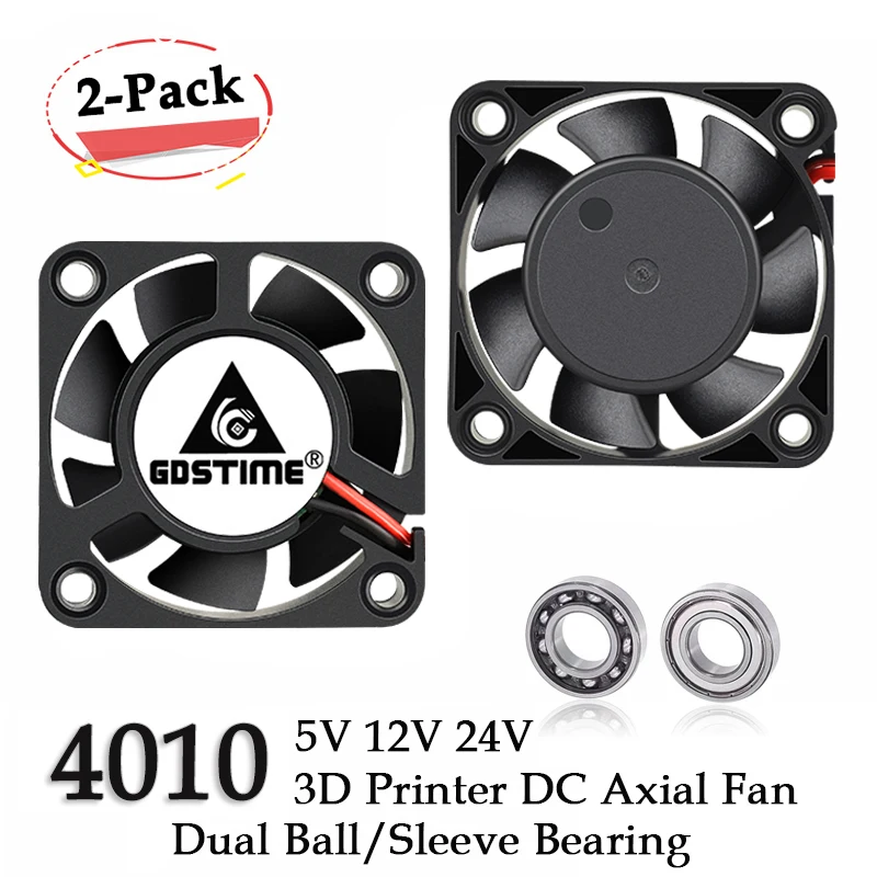 2Pcs Gdstime DC 24V 12V 5V 40mm x 40mm x 10mm 2-Pin Ball Bearing Computer PC Case Cooling Fan 4010