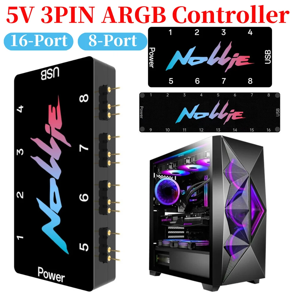 5V 3PIN ARGB Controller 8 Way Addressable ARGB Splitter Nollie SignalRGB OpenRGB For Computer PC Case Cooling Fans Light Strip