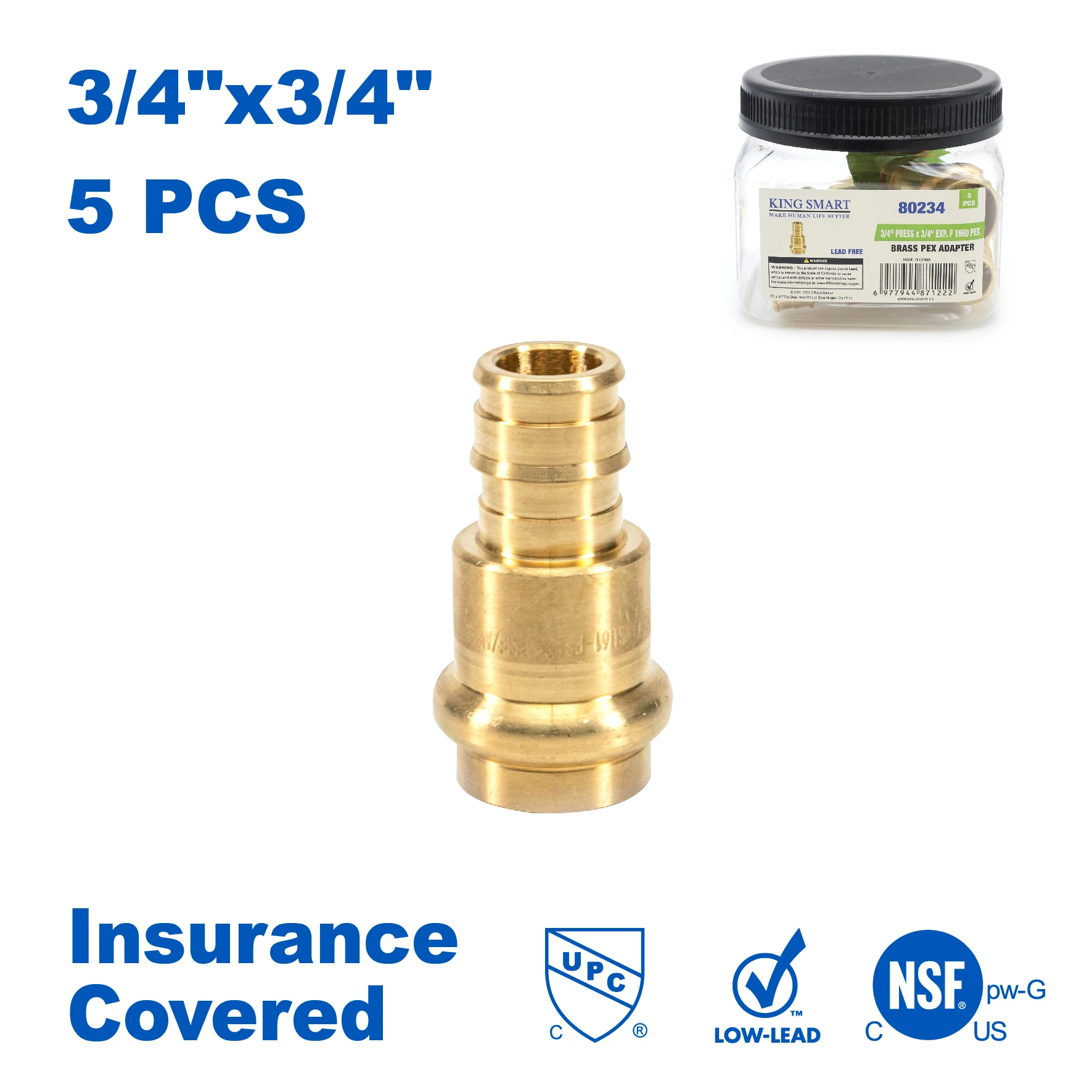KING SMART 3/4" Press * 3/4" F1960 PEX/Wisbo PEX Straight Adapter; 5 Pcs/Case; 80234