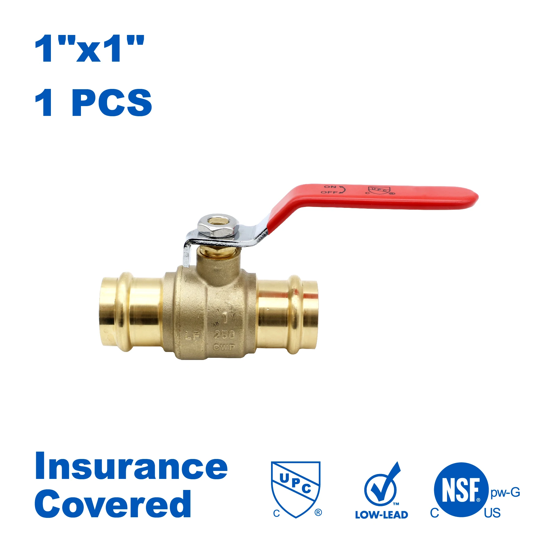 KING SMART 1" Press Full Port 1/4 Turn Press Ball Valve; for Hot and Cold Water System; 1 Pcs/Case; Lead Free Brass; 80243