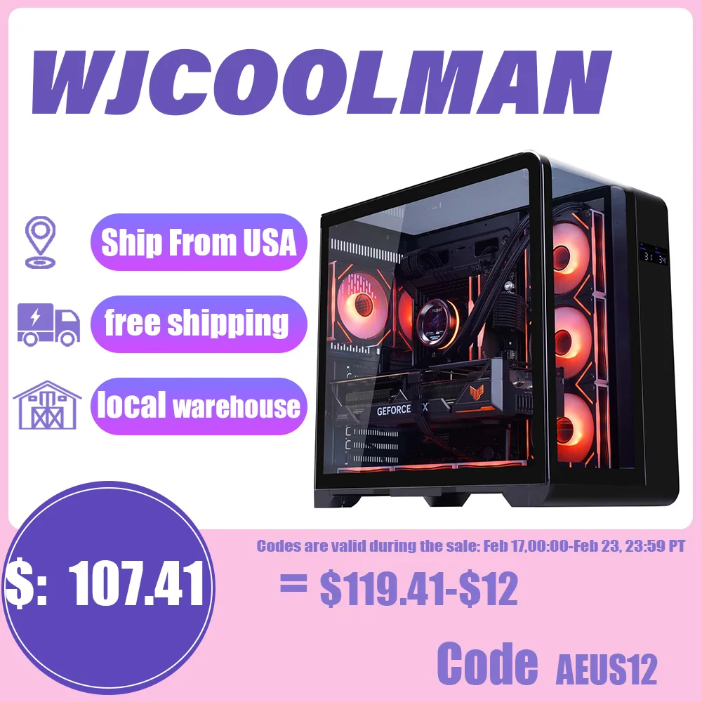 WJCOOLMAN Wen tian Plus Black Panoramic Version 2Side Transparent Glass Gaming Computer Case Support 7 Fan Positions 360 AIO Sup