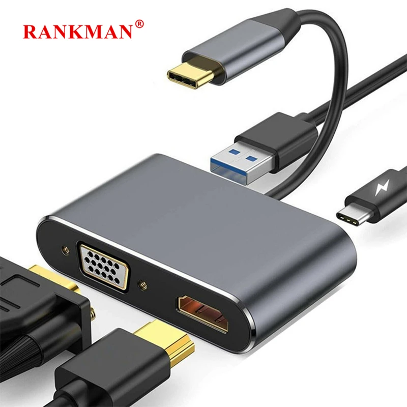 USB C Hub Splitter to 4K HDMI-Compatible Adapter Type C VGA USB 3.0 Docking Station for MacBook iPad Samsung S21 Dex Laptop TV