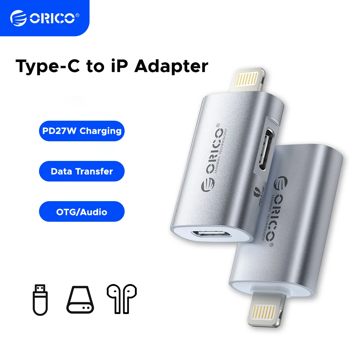 ORICO USB C OTG Adapter 27W Charging Data Transfer Audio Compatible with iPhone 14, 13, 12, 11 Xs iPad iPod AirPods Tablet