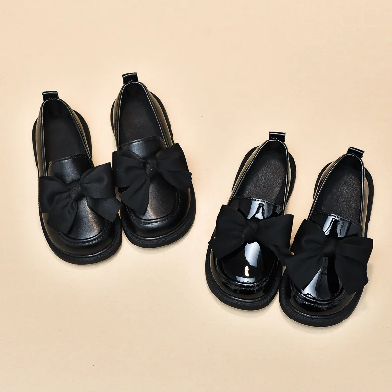 Girls' shoes Spring new girls' school shoe bow tie women's shoe shiny leather loafers fashion princess shoe versatile kids shoes