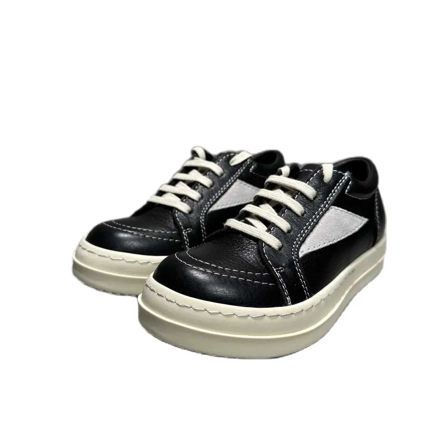 Kids Sneakers Girls Boys Leather Children Shoes Luxury Lace Up Casual Spring Streetwear Black White Boots