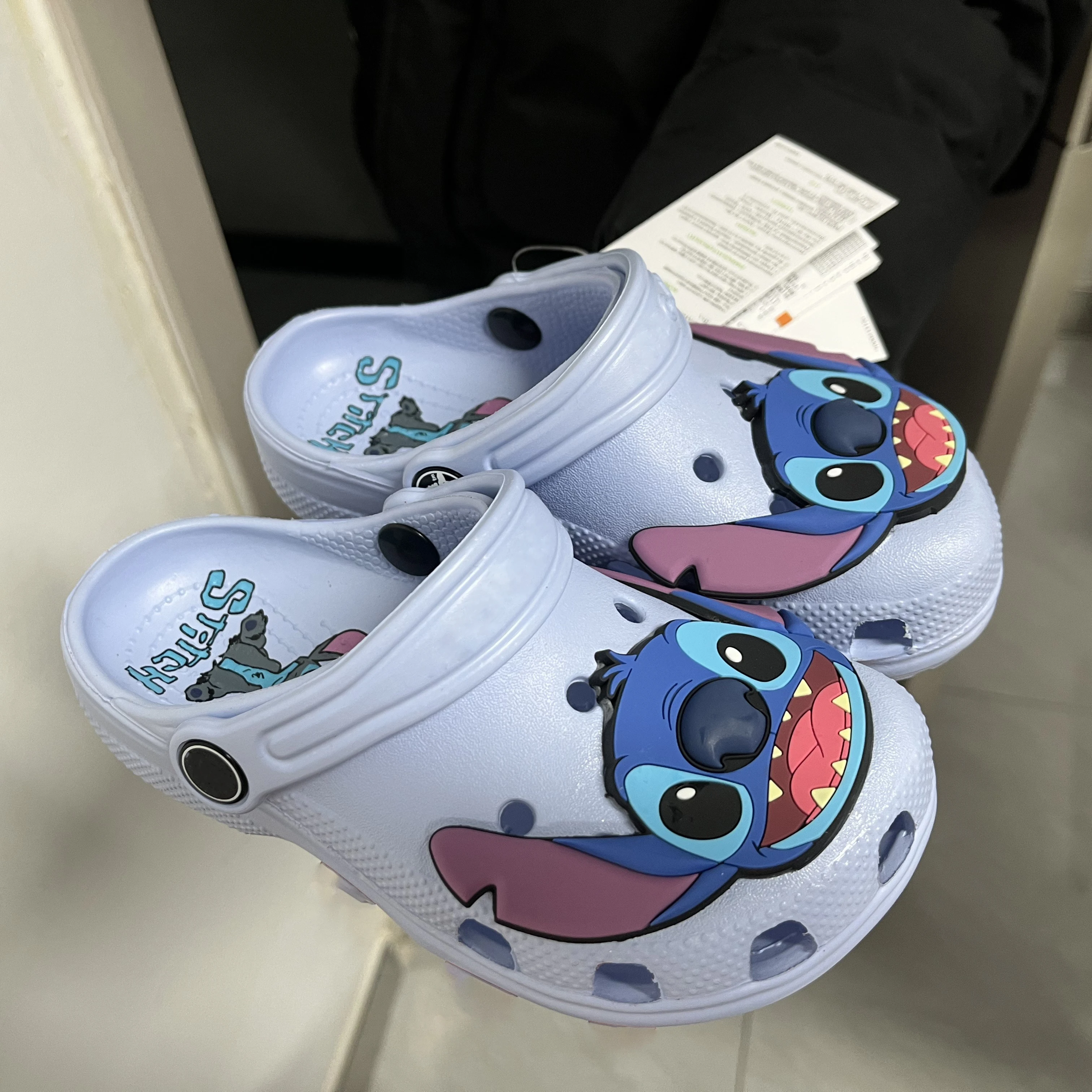 Miniso Stitch Cartoon Anime Solid Waterproof Slippers Outdoor Sandals Stitch Casual Breathable Ankle-Wrap For Kids Shoes Gift