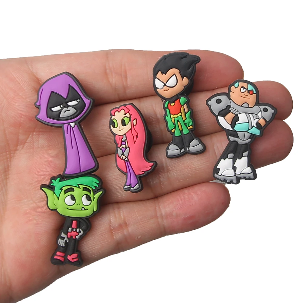 1pcs Teen Titans Cartoon Shoe Charms Accessories Children Shoe Decorations Fit Wristband Classic Clog Charms Party Present