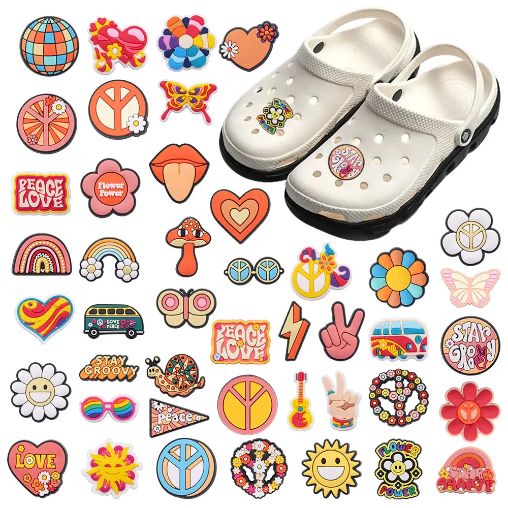 44pcs/set Cute Love Sun Flower Rainbow PVC shoe Buckle Fit Wristbands DIY Charms Decorations Hole Kids Shoes Ornaments