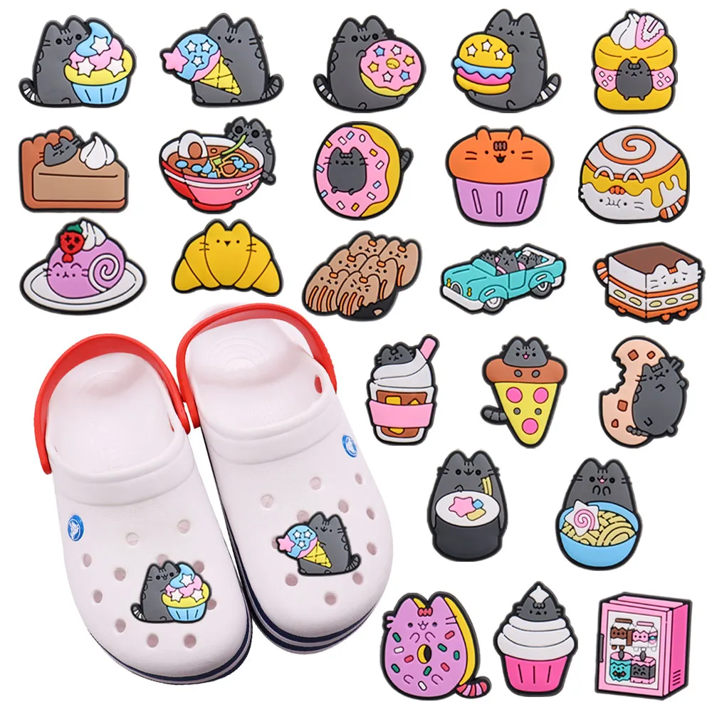 23Pcs/set Animals Cartoon Cake Cat Shoes Silicone Cute Children Shoe Accessories Garden Hole Slipper Decor Kids Gifts