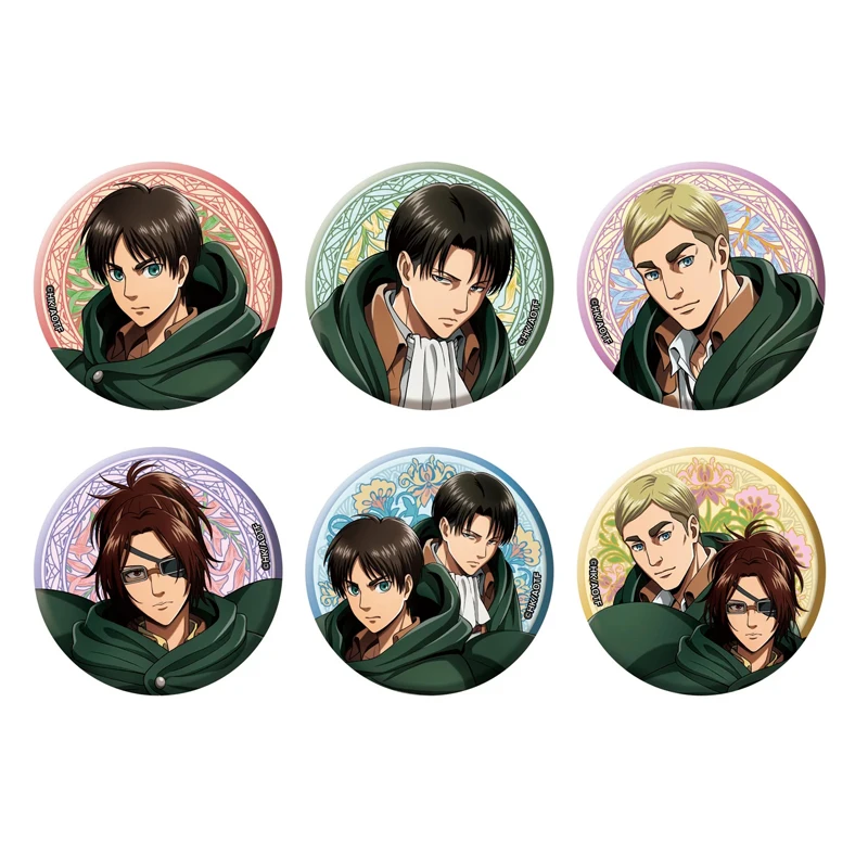 Attack Titans Anime Erwin Smith Eren Levi Armin Arlelt Zoe Hange Hans Jean Kirstein Sasha Blouse 50mm Metal Badge Brooch Pins