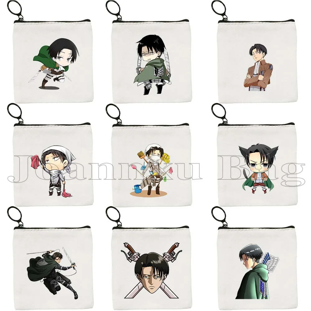 Anime Attack on Titan Eren Levi Ackerman Canvas Coin Purse Small Bag Key Storage Card Bags Cartoon Coin Bag Wallet Zipper Pouch