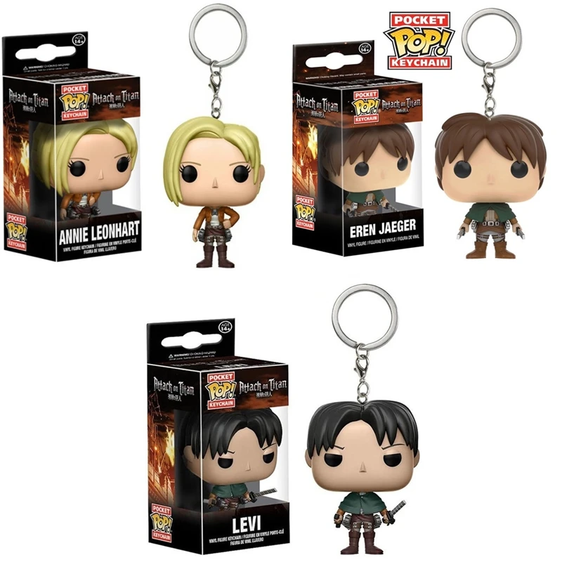 Funko Japanese Anime Attack on Titan Jaeger Annie Leonhart Levi Eren Action Figure Keychain Pocket Toys Anime Figuras Keyring