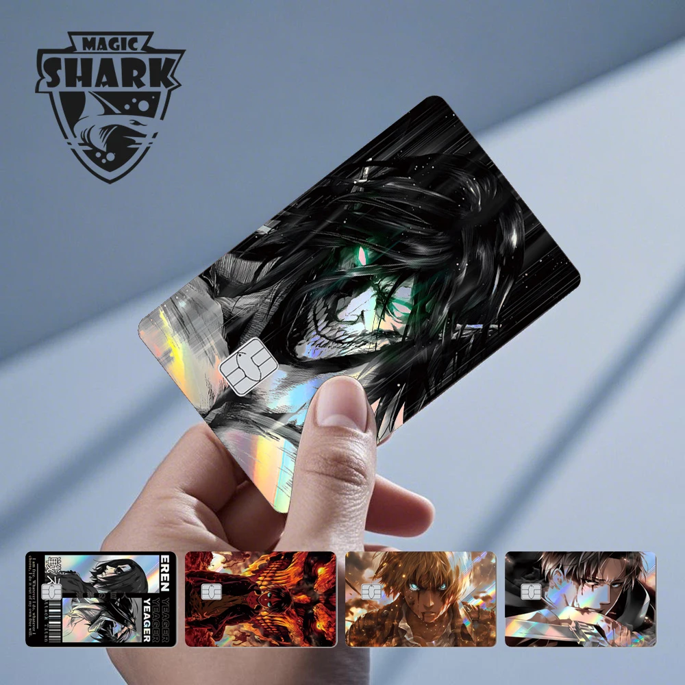 Hot Sale Anime Freedom Titan Eren Mikasa Levi Laser Holographic Shinny Skin Cover Sticker Film for Credit Bank Debit Card