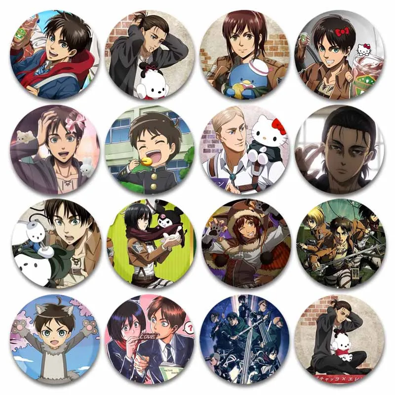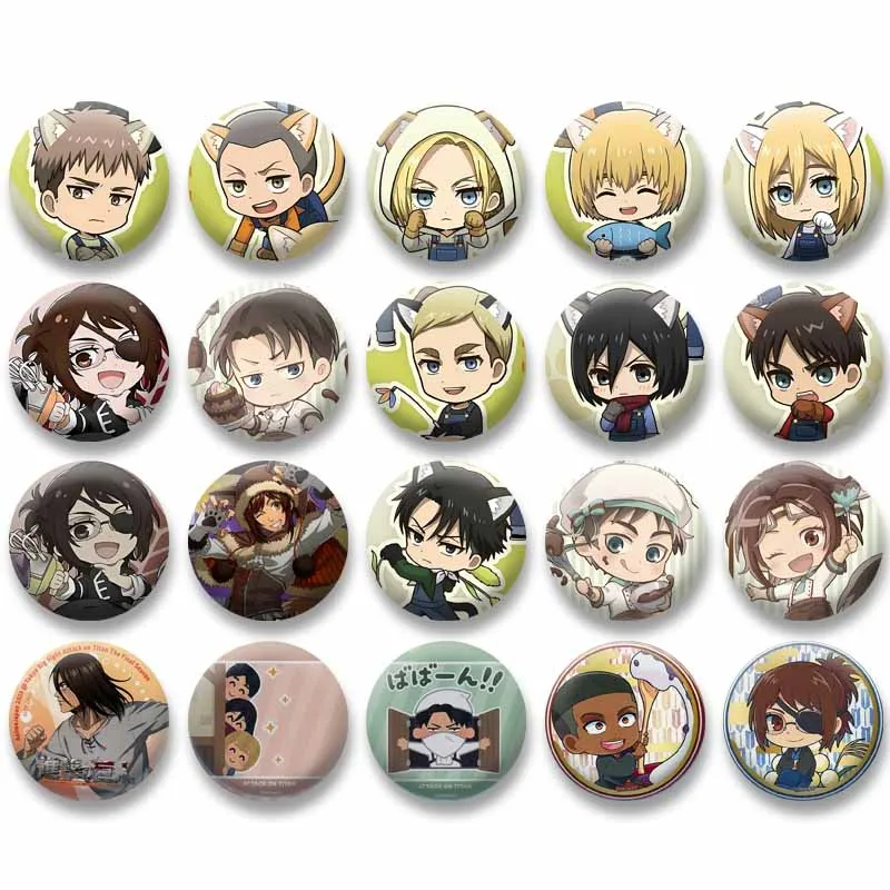 Attack on Titan Enamel Pins Cartoon Figure Eren Levi Mikasa Badge Customizable Round Brooch Backpack Jewelry Friends Fans Gifts