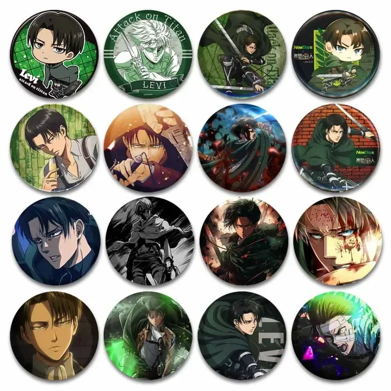 Hot Anime Character Levi Ackerman Enamel Pin Round Snap-in Brooch on Backpack Clothes Hat Badge Accessory Gifts for Friend Kids