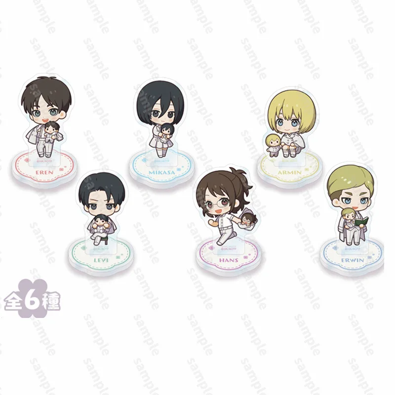 Attacking giants White Outfit Q-Version Baby Holding Acg Stand Q Levi Acrylic Stand Mini Armin State Hange Doll Erwin Plate Toy