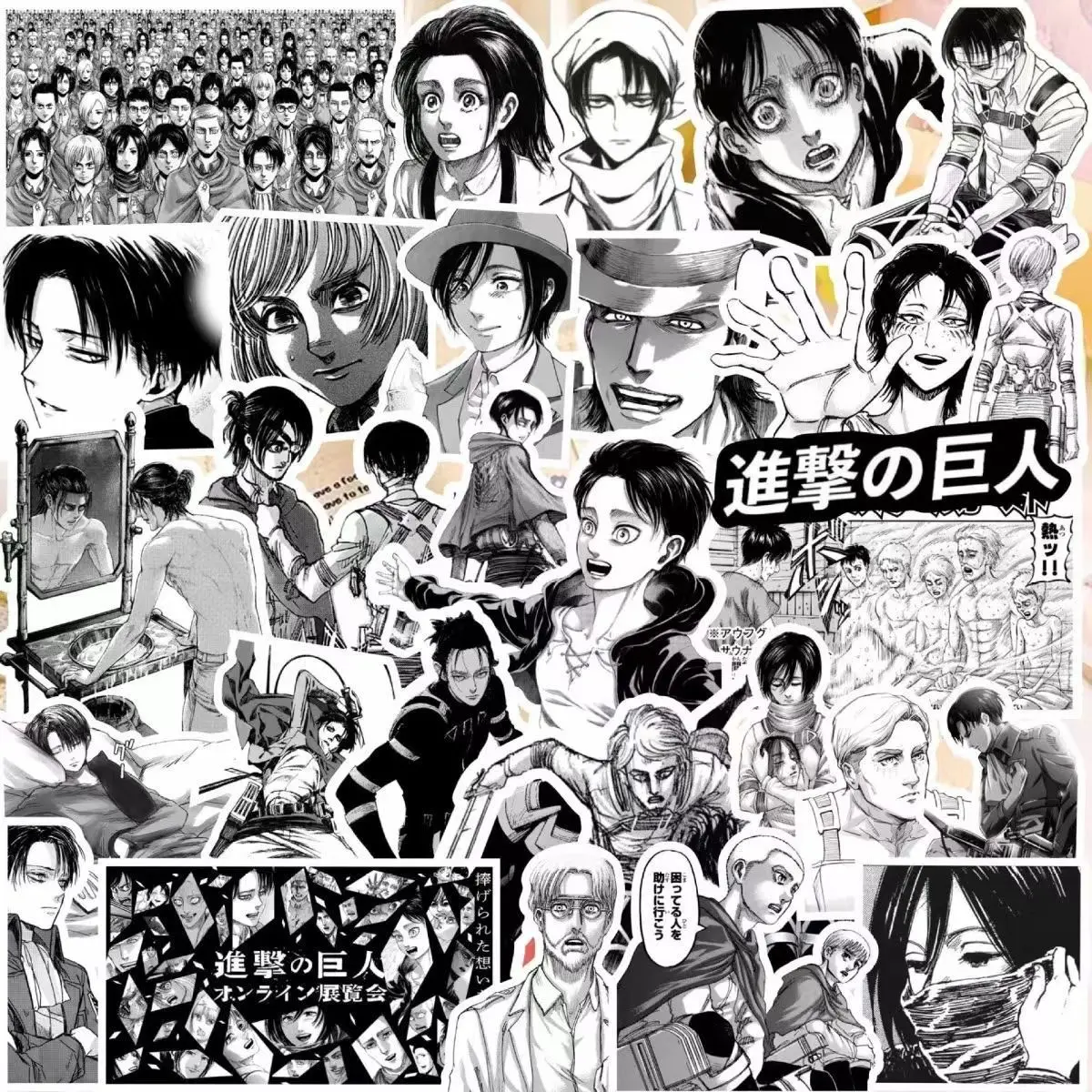 60pcs Attack on Titan Black and White Stickers Mikasa Allen Levi Stickers Notebooks Pinup Picture Decoration For Kids Toy  Read more