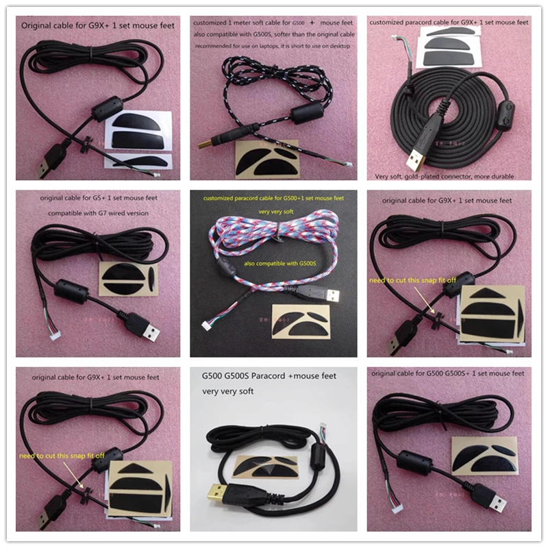 1 Set Original Mouse Cable For Logitech G5 G7 Wired G9X G500 G500S Soft Mice Line Wire With Free Mouse Skated Feet