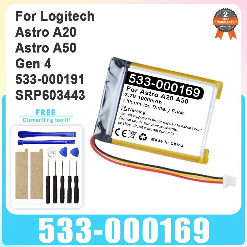 New Replacement Battery For Logitech Astro A20 A50 Gen 4 2016 Gen4 2019 533-000169 533-000191 SRP603443 Gaming Headset