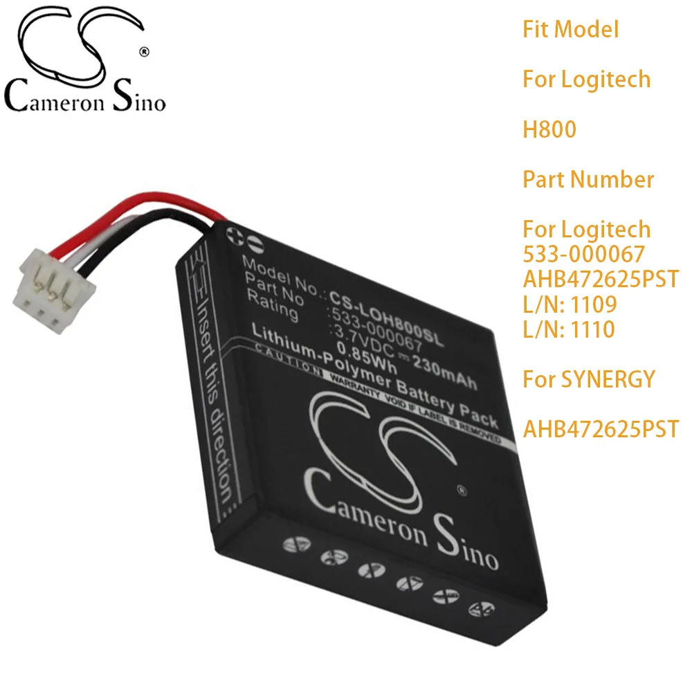 Cameron Sino Wireless Headset Battery For Logitech H800 Part Number Logitech 533-000067 AHB472625PST L/N: 1109 L/N: 1110