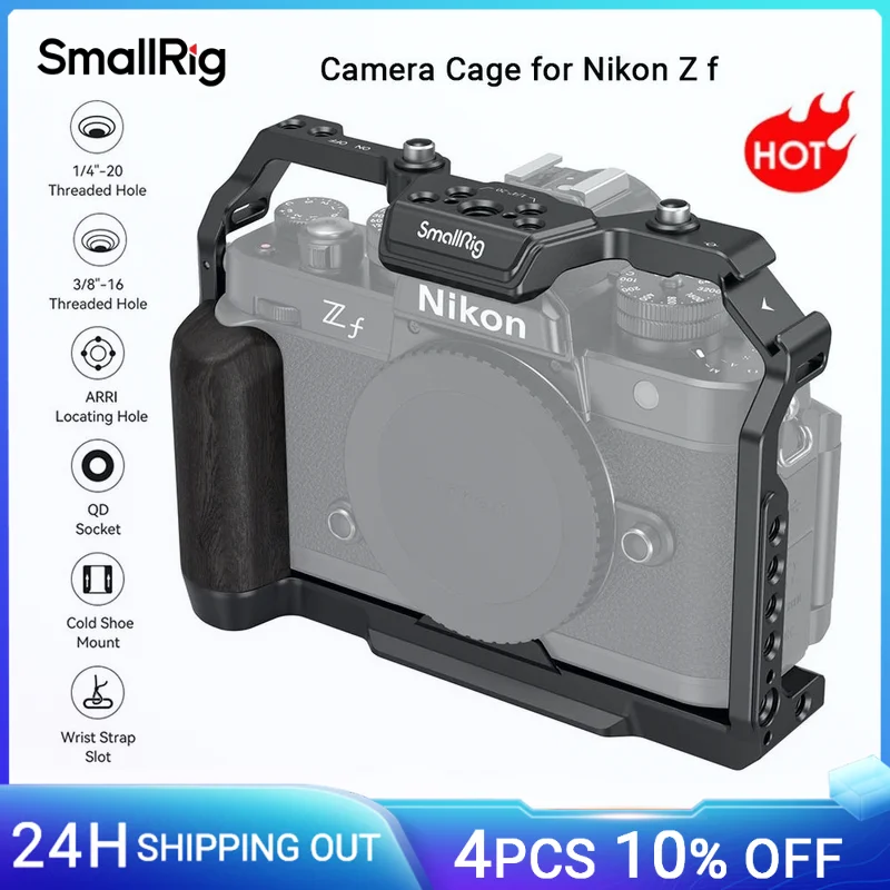 SmallRig Z f Camera Cage for Nikon Z f, w Wooden Grip Built-in Quick-Release Plate for Arca for Quickly Switch on Gimbal/Tripods