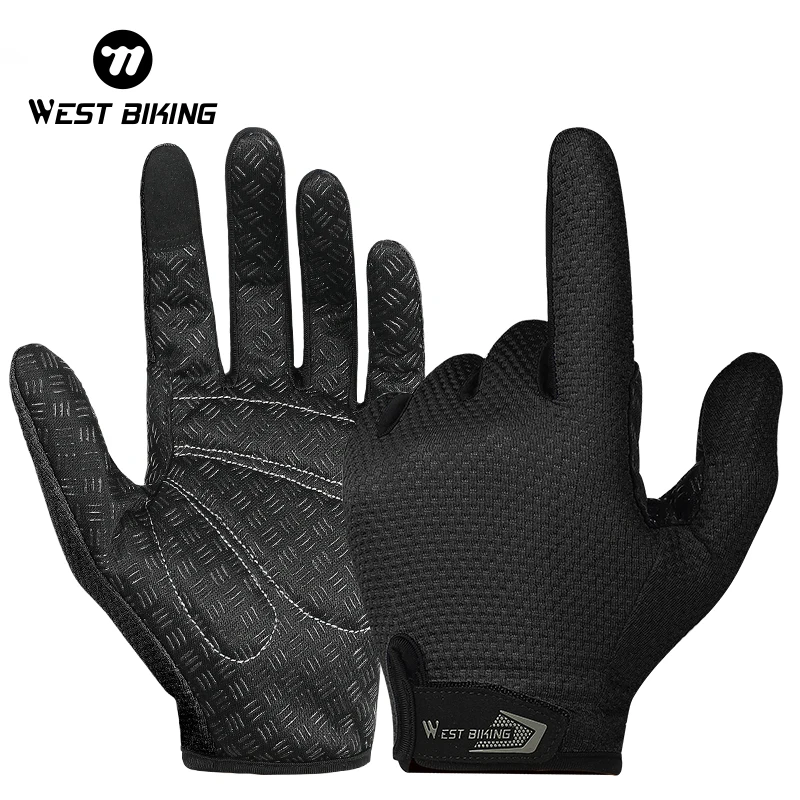 WEST BIKING Summer Cycling Gloves MTB Full Finger Bike Gloves Touch Screen Non-Slip Silicone Palm Rest Driving Riding Gloves