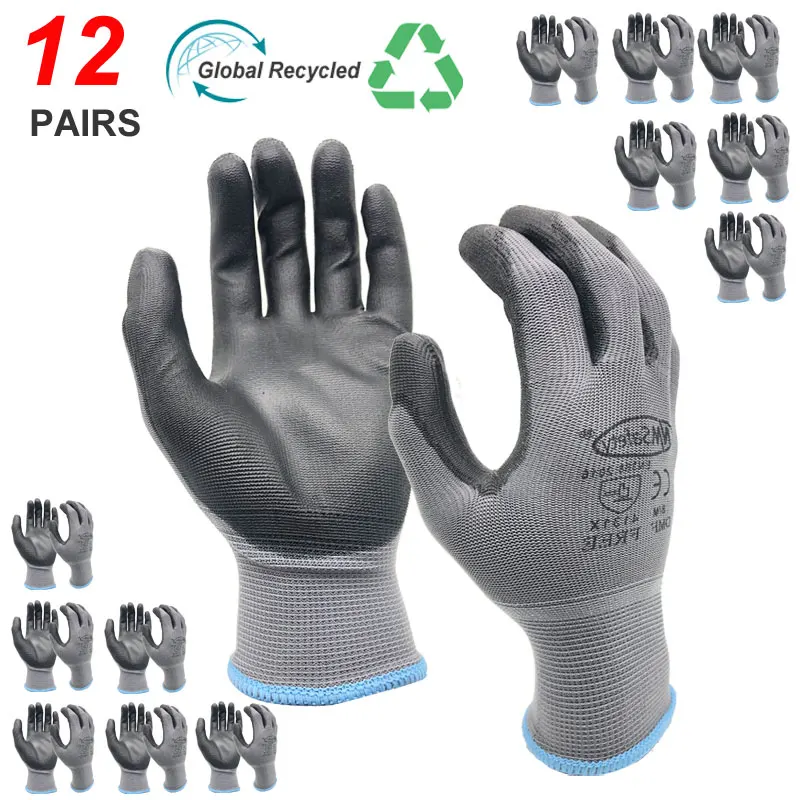 NMSafety 12Pairs/24Pcs Safety Protective Coated PU Work Gloves Palm Mechanic Working Glove CE Certificated EN388 4131X