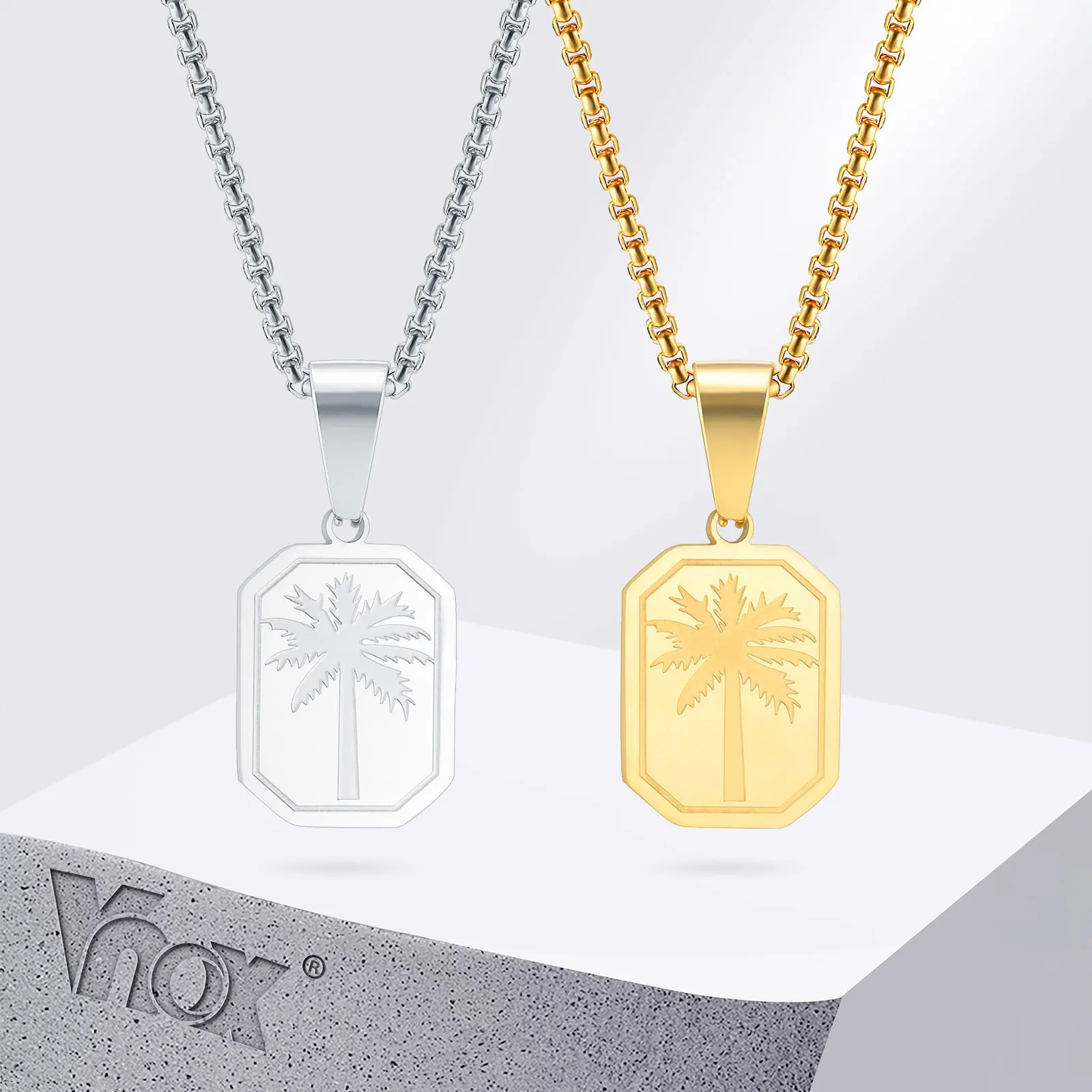 Vnox Simple Geometric Unisex Necklaces, Rectangle Pendant Monogram Palm Tree Collar with Box Chain, Men Women Jewelry