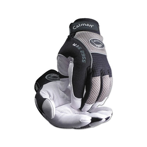 Caiman White Goat Grain Leather Palm Gloves, X-Large, White/Black/Gray (607-2955-XL)