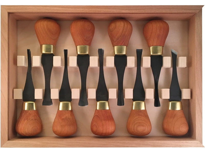 Flexcut Premium Deluxe Palm Set SS Blade Cherry Wood Handles FRP405. Features broad short knob Cherry wood handles in the European tradition. Brass ferrule. Includes: #2 x 5/16" (8mm) #3 x 3/8" (9mm) #3 x 5/8" (16mm) #5 x 9/16" (14mm) #6 x 5/16"...  Read more