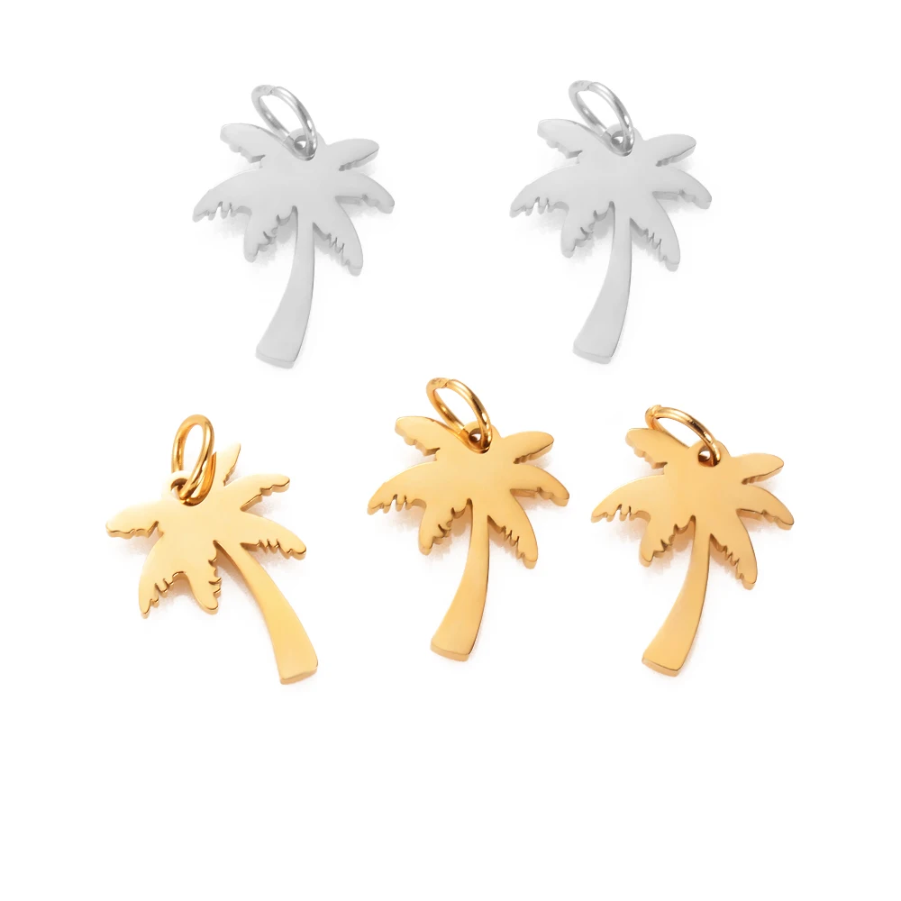 10Pcs Women Tiny Palm Tree Necklace Stainless Steel Coconut Pendant Necklaces Minimalist Plant Charms for Jewelry Making