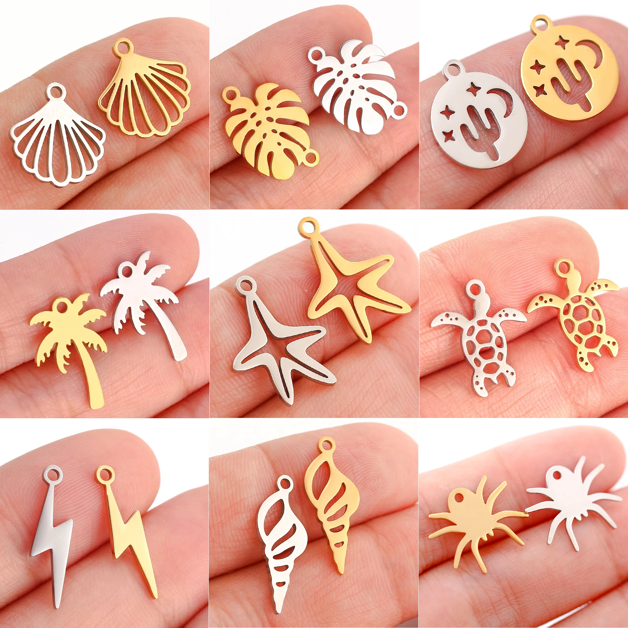 5Pcs/Lot Coconut Palm/Starfish/Cactus/Lightning Charms Stainless Steel Marine Pendants Diy Bracelet Earrings Making Accessories