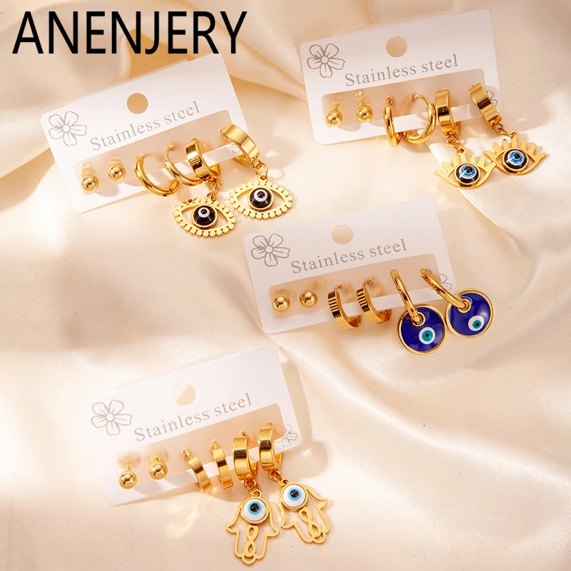 ANENJERY 316L Stainless Steel 6 Pieces Circle Eyes Palm Pendant Earring for Women Simple Niche Jewelry Gifts Wholesale  Read more