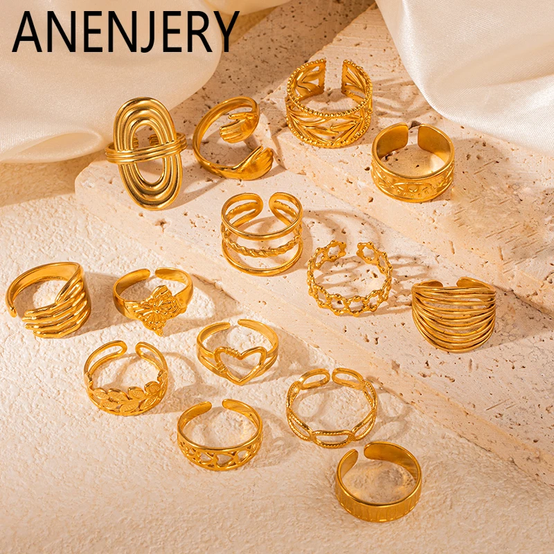 ANENJERY 316L Stainless Steel Butterfly Line Palm Leaf Open Ring for Women Men Exaggerated Creative Jewelry Gifts Wholesale  Read more